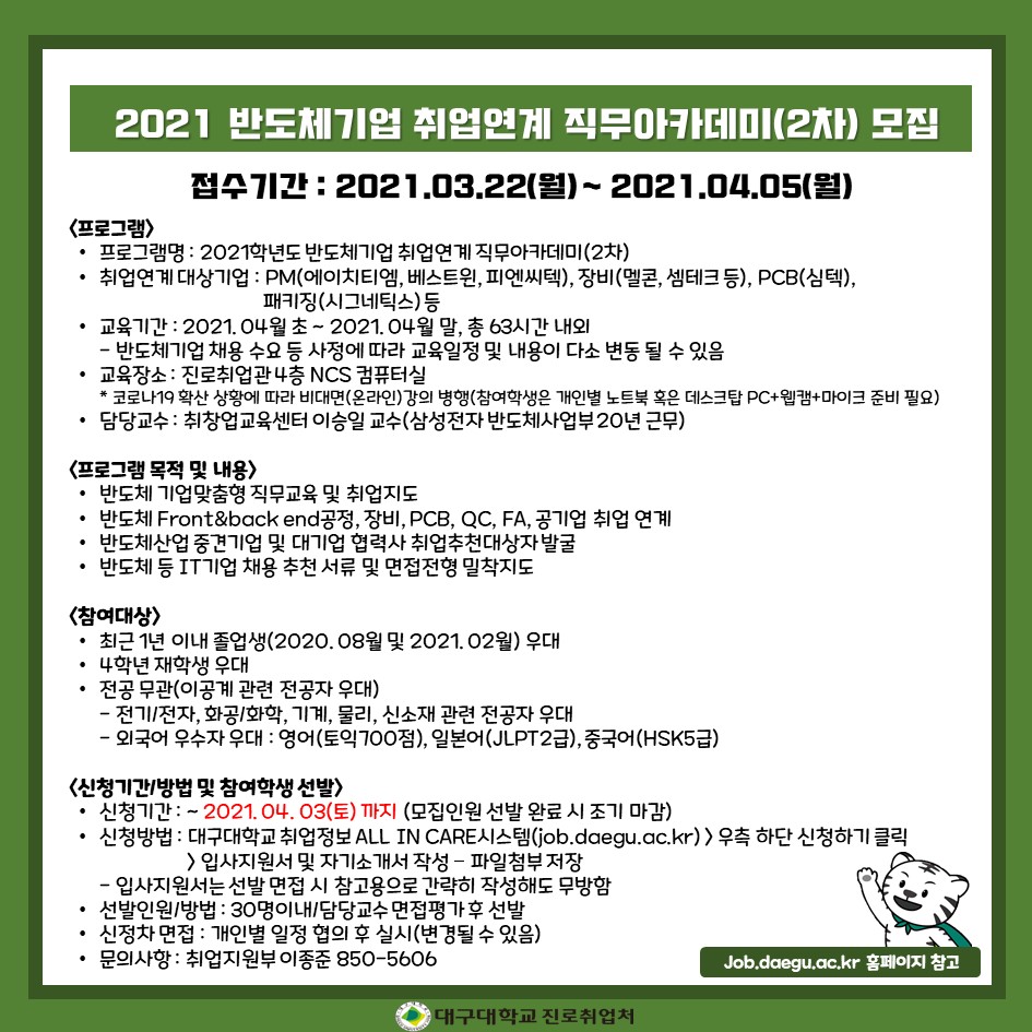 2021학년도 반도체기업 취업연계 직무아카데미(2차) 모집 공고