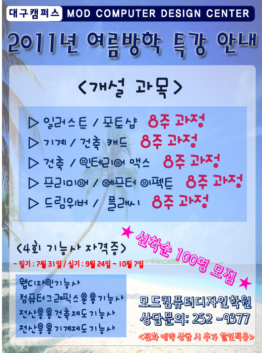 2011년 대구컴퓨터학원 여름방학특강반 모집