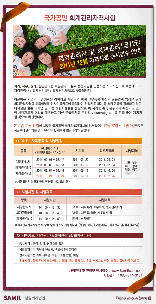 (접수10/27~11/9)2011년 12월 국가공인 회계관리자격시험 안내